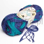 Bardzo ciekawa, ale zarazem specyficzna nitka. Forma tasiemki z doczepioną siateczką jest świetną alternatywą dla osób które szybką chcą zobaczyć efekty swojej pracy. Włóczka tworzy przepiękne falbanki i jest bardzo leciutka. Producent zaleca do robienia szali, ale świetnie wygląda jako spódniczka dla małych dziewczynek, wykończenie ubrań lub wykonania ozdobnych poduszek.